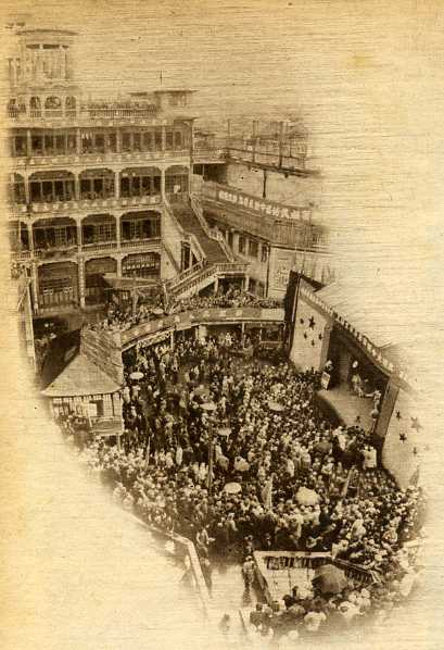 上海市文艺界在大世界、大新、先施等游艺场举行春节大联合演出。这是大世界场内演出之盛况。