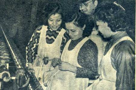国营上海一棉纺织厂筒子间挡车工向她们同间的工人周阿凤学习,因为她打结好,回纱少,已被选为全上海国营棉纺厂竖锭式络经机挡车工的第一名,为突击增产贡献了有效方法。