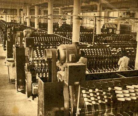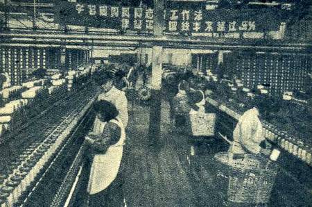 占上海全市工业比重最大的是棉纺织工业。图为中国纺织公司的一部。