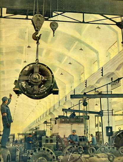 上海柴油机厂主要生产柴油机,也生产选矿机、打桩机等。这是一台即将完成的柴油机。
