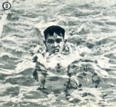 女子100公尺自由泳第一名上海队黄莲华。以上三项成绩都打破了全国纪录。