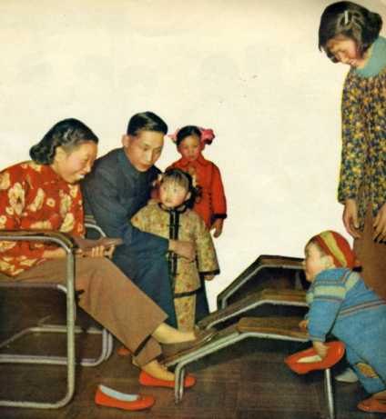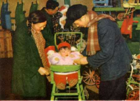 上海公共交通公司的工人常寓农和他的妻子在为他们的小宝宝购选用品和玩具。