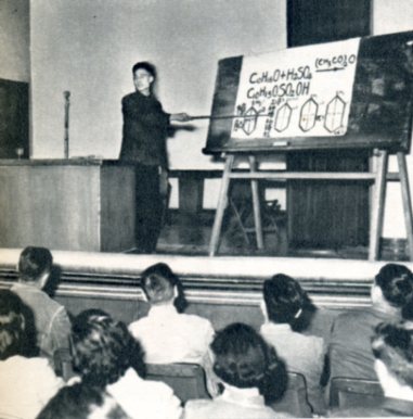 王其灼在中国药学会上海分会宣读新写成的论文。