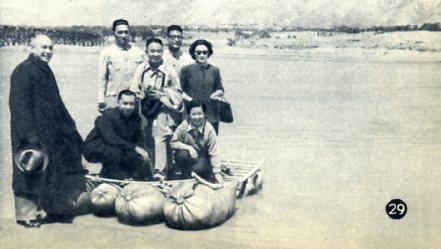 参加政协参观团访问西北时,在兰州附近黄河边准备登上羊皮筏。