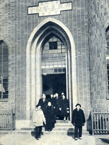 星期天夫妇两人带着身边的两个孩子到教堂做礼拜。