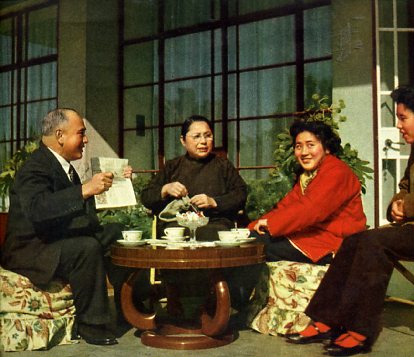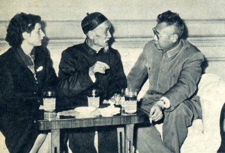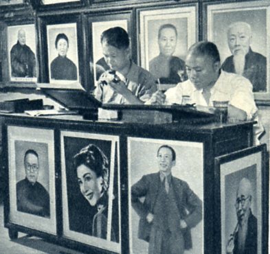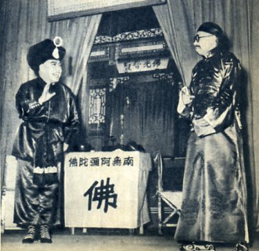 永安公司公私合营时,他(左)和职工一起演戏庆祝。