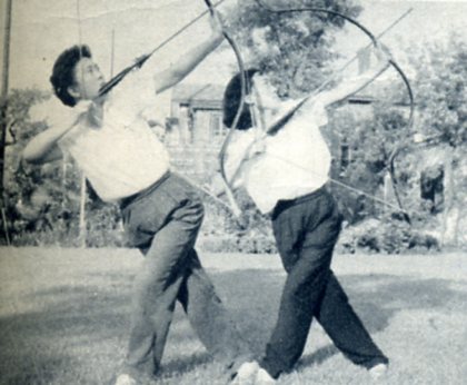 长女和次女为参加全国射箭比赛作准备。