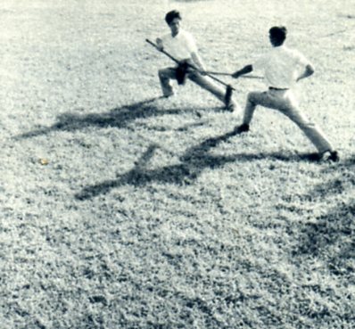 长子和次子用长枪对打。