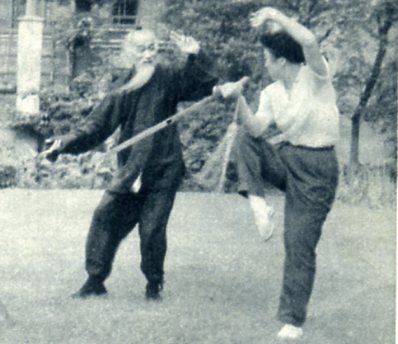 和小孙子较量武术。
