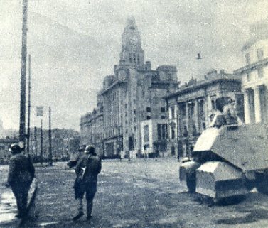 国民党的装甲车在马路上横冲直撞。