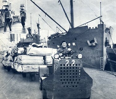 码头工人的生活在解放前(左上角)和解放后(下)真有天壌之别。