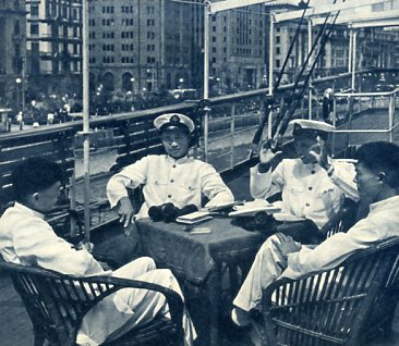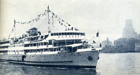 黄浦江上汽笛声声,各种船只往来如梭,停靠在浦西码头的英国怡和公司“东韵”号轮船冉冉地升起了一面红白旗,这表示中国引水员已经登船,船就要起碇了。