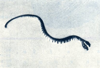 上海自然博物馆最近收到市郊金山县钱圩人民公社社员送来一条两头蛇。蛇的两个头部发育正常,两张嘴可以同时取食,两对眼睛视觉也正常。据有关科学工作者认为:这是一条胚胎发育不正常的赤练蛇,它的产生,是母体在受精后受到物理的、化学的或者病理的扰乱的缘故。