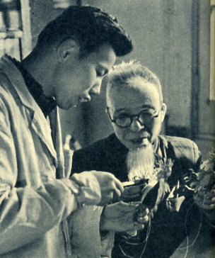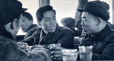 大批新的技术力量成长起来,这是工人出身的工程师吴顺祥(左)正设法提高柴油质量。