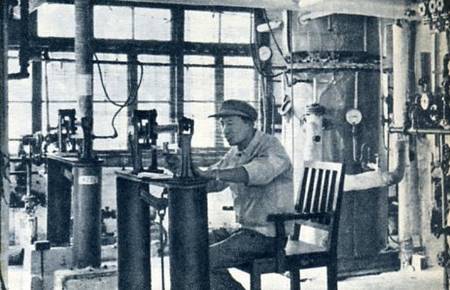 我国开始利用石油工业的副产品石腊制皂原料—合成脂肪酸,这是上海制皂厂新建的合成脂肪酸车间精制工段。
