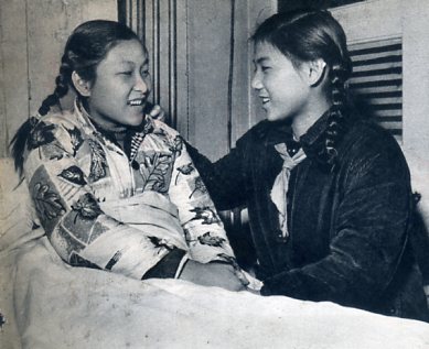去年秋天,张雅芳从小学毕业,考进了东光中学。她的亲密伙伴徐桂英则考进了飞虹中学。可是迎接张雅芳的仍然是个友爱的集体。