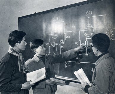 为了提高建设祖国的本领,青年职工们还进厂办业余学校学习。