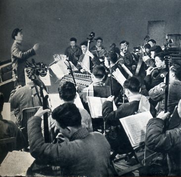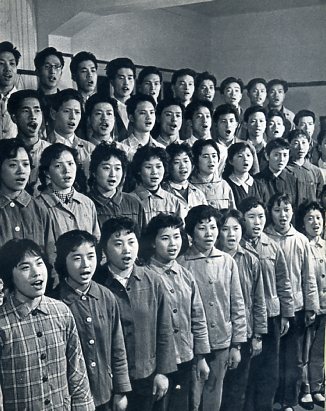 大唱革命歌曲已成为青年工人的业余爱好之一,图为业余合唱队正在练唱集体创作的《机床工人之歌》。