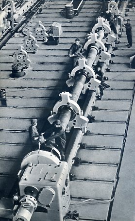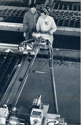 上海船厂创制成功的光电跟踪自动切割机。用这种机器切割钢板比用火焰割刀要省好几道工序,不仅效率高,而且质量好。