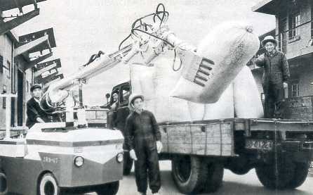 上海电机专用机械厂采用的双臂座标式液压机械手。