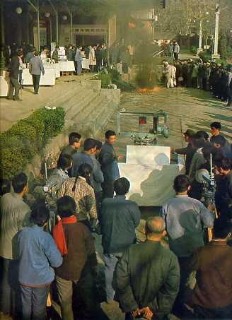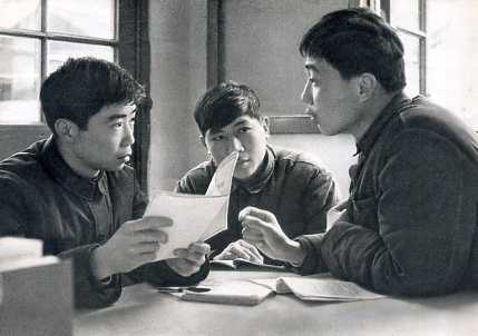 历史系学生与上海重型机械制造公司的工人理论队伍一起,研究儒法斗争史。