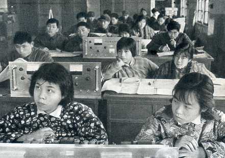 外语系师生到市郊上海县北桥公社办中小学教师英语短训班。