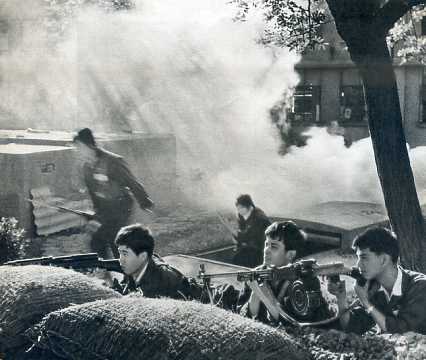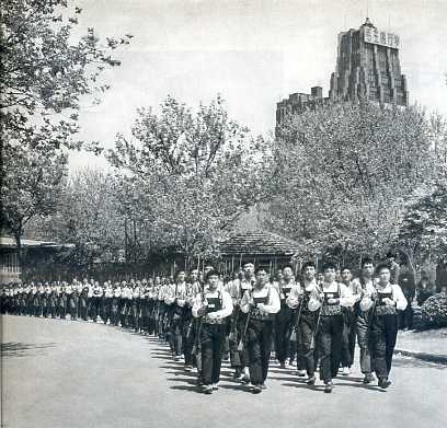 上海长江机械厂民兵小分队到里弄,和里弄干部、民警、居民一起共同做好里弄工作。