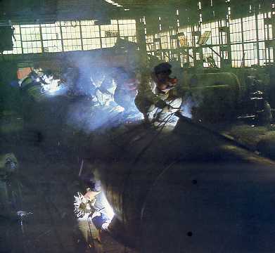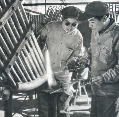 上海第二焊接厂的工人正在加紧赶制化肥设备。