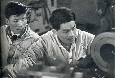 金属切削交流队队员、老工人朱恒,利用业余时间研究金属切削新技术。