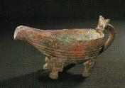 铜匜,通长26.8厘米。(匜,一种盛酒的器具。)