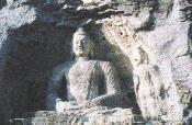 云冈石窟第20窟大佛。这是云冈石窟中北魏石雕的代表作品。释迦坐像高13.7米。