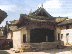 玉帝庙明代戏台。为明代早期式样,其屋顶尚保留元代单檐歇山格式,然梁架结构已变,横跨度已扩大。