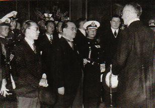 孔祥熙访问德国。1937年4月,财政部长孔祥熙(左二)、海军部长陈绍宽(左三)访问欧美,希望得到欧美各国援助,抑止日本的侵华,但未有多大成效。左一为驻德大使程天放,前右一为德国外长沙赫德。