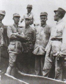八路军总部东渡黃河。右起:总指挥朱德、政治部主任任弼时、副总参谋长左权。
