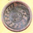 彩绘龙纹陶盘。距今4,000年前的陶寺墓群中出土的褐陶大长工盘,直径37厘米,蟠曲的彩龙是中国龙的最早绘画作品。