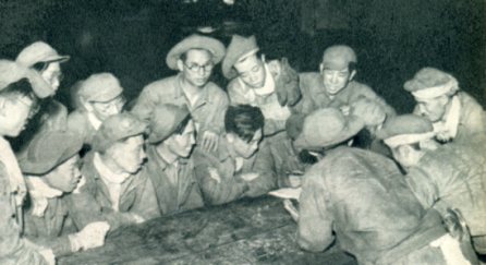 为了解决生产中发生的问题,薄板部的李有才小组在开技术研究会。
