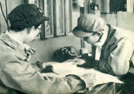 一号高炉工人出身的副工长张二货(右)和技术员出身的工长胡嘉龙订立了互教合同。