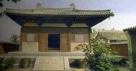 山西省五台县李家庄的南禅寺,建于唐建中三年(公元782)。距今已有一千一百八十年,是我国现存最早的木结构建筑。大殿斗拱简洁、雄壮,屋顶坡度平缓,具有我国唐代木结构建筑的特点。(1963年)