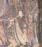 永乐宫壁画局部。在三清殿內神坛墙外侧及四壁,绘有高430厘米的巨幅壁画《朝元图》,这是其中局部。
