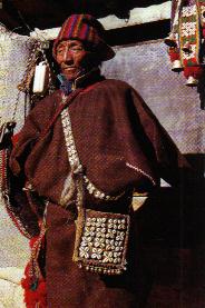 农区牧羊人服装。牛毛毡斗篷,贝壳装饰牛皮小包。