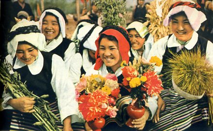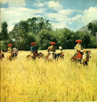 秋天,拉萨河谷的田野上,藏族农民按照1450多年前留传下来的习俗,欢度了庆祝丰收的“望果节”。