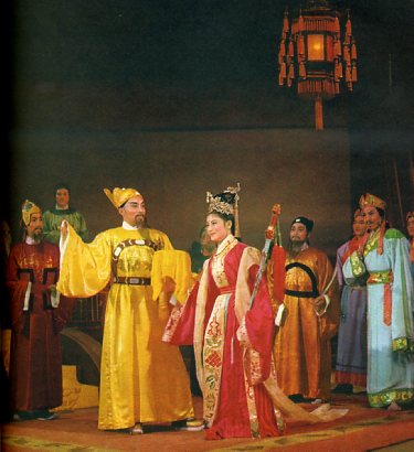 话剧“文成公主”中松赞干布与文成公主在怒江相遇的一场。