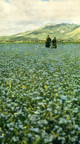 帕里高原的秀丽景色。这种蓝花名叫蓝耳石,是一种良好的牧草。