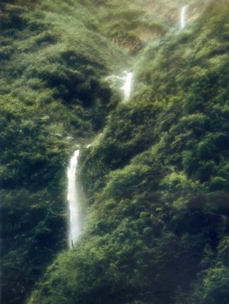 喜马拉雅山南坡河谷深峻,多瀑布和急流,水力资源很丰富。这是高150余米的三级飞瀑。