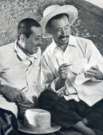 生产队副队长王新民(左)和老贫农魏文中在创作批林批孔诗集。