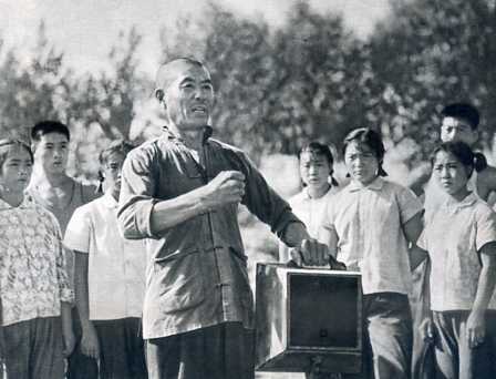 大队理论辅导员向社员宣讲我国劳动人民反孔斗争史。