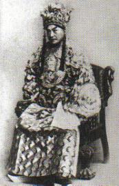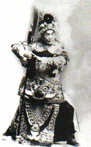 尚和玉(1873-1957)。宝坻人。他拜俞菊笙为师并从张玉贵学俞派武生戏。表演恪守俞氏风范,以功底扎实、功架稳健、威猛凝重着称。他要求武生表演必须具备“唱、念、做、打、翻”五个条件,达到“脆、狠、帅”三个标准。图为《金龙阵》中尚和玉饰关铃。
