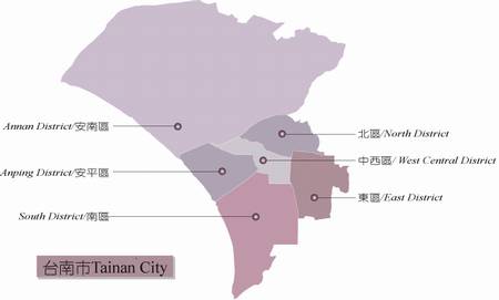 曾称赤崁,以附近为平埔族崁社址得名。明天启四年(公元1624年)荷兰入侵初建热兰遮城于今安平区,后在本岛增筑普罗民遮城(俗称赤崁楼)。1661年郑成功收复台湾,置东都,改赤崁楼为承天府治。清康熙二十二年(公元1683年)改承天府为台湾府,仍为全台首邑。光绪十三年(公元1887年)台湾建省,省会北移,改台湾府为台南府,为南部行政中心。1895年日本占领台湾后,初属台南县。1920年废厅设州,置台南市属台南州。1945年光复后仍属台南县。1950年改省辖市。