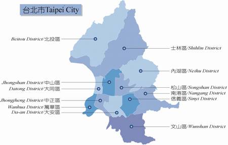 郑氏治台后,曾属天兴州。清康熙二十二年(公元1683年)属诸罗县,后经几次变动,至光绪元年(公元1875年)设台北府,台北之名始此,成为台湾北部政治中心。1887年台湾建省,巡抚衙门设于今之中正区。1895年日占后废台北府,设台北县。此后行政建置变动频繁,至1920年始为台北市。