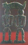高山族雅美人男子装束。高山族雅美人聚居在兰屿岛,岛上气候炎热。雅美男子的传统装束十分简单,日常仅系一兜裆布,盛装时身穿无领无袖对襟上衣,头戴银盔帽。